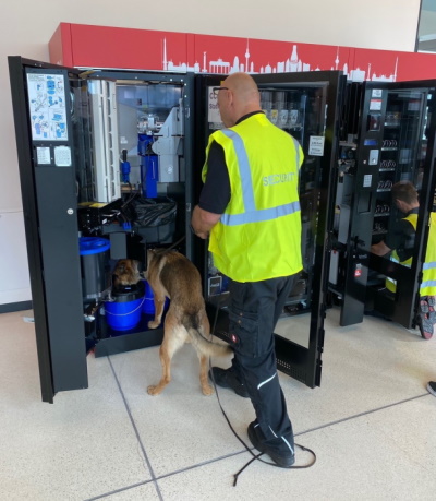 Wo Röntgentechnik oder Detektoren bei der Sicherheitskontrolle nicht geeignet sind, kommen sie zum Einsatz: Sprengstoffspürhunde. Am BER werden drei Hundeführer der FraSec mit ihren Tieren für die groß angelegten Cleaning-Maßnahmen eingesetzt. Alle Räumlichkeiten, Fahrzeuge und Flächen, die künftig innerhalb des Sicherheitsbereichs des Flughafens liegen, müssen eingehend durchsucht werden. Die belgischen Schäferhunde, sogenannte Malinois, sind hierbei eine besondere Unterstützung: Mit ihren geruchsempfindlichen Nasen können sie unterschiedlichste Sprengstoffe und Munition schnell und präzise aufspüren. Damit sorgen sie als zusätzliche Kontrolleure für mehr Sicherheit auf der 970 Hektar großen Außenfläche sowie in dem 280.000 Quadratmeter großen Innenbereich des BER.