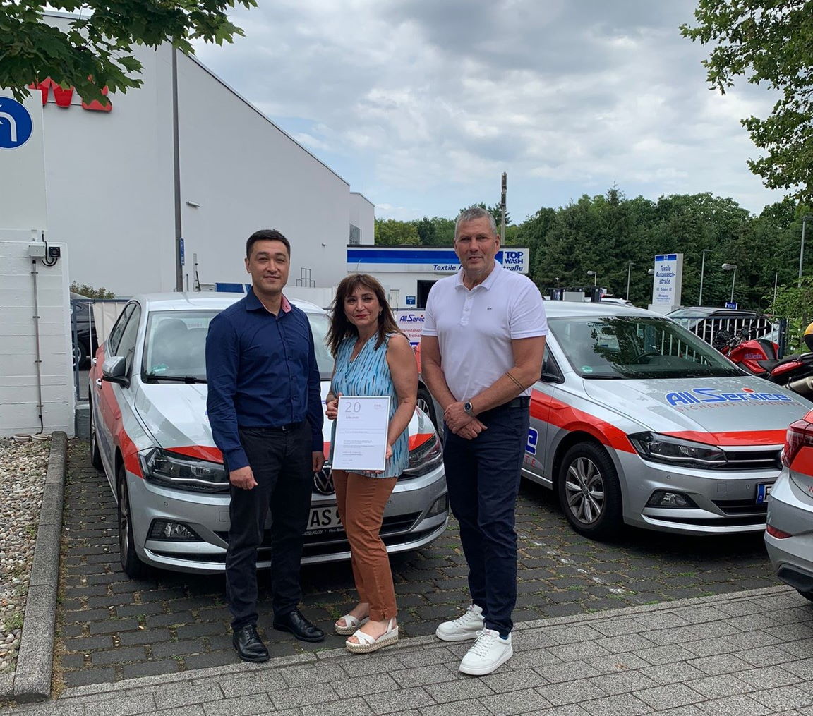 Im Bild: von links Johann Helfrich, Qualitätsbeauftragter All Service Sicherheitsdienste GmbH; Serife Tülay Alkan-Haller, Prokuristin All Service Sicherheitsdienste GmbH, Jürgen A. Freund, Leiter Geschäftsstelle Frankfurt am Main DGQ