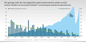 Auszug: 2023 war eines der sichersten Jahre in der Geschichte der Luftfahrt. Die Zahl der tödlich Verunglückten in der zivilen Luftfahrt ist langfristig stetig rückläufig, obwohl die Zahl der Passagiere gleichzeitig steigt. Seit jeher ist in der Luftfahrt der Grundsatz verankert, dass Sicherheit absolute Priorität hat – auch weil immer wieder Prozesse angepasst und weiterentwickelt werden.